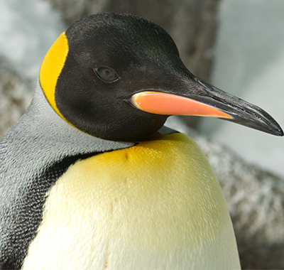 The strong contrasting black background of this king penguin's bill is believed to augment UV light reflection.