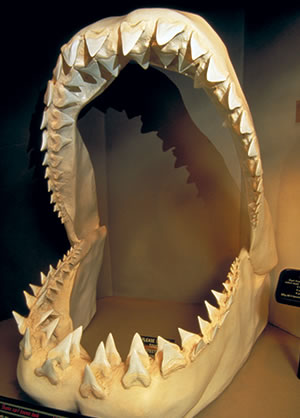 The teeth from enormous fossil jaws of Carcharodon megalodon tell us that this extinct shark lived 10 to 70 million years ago.